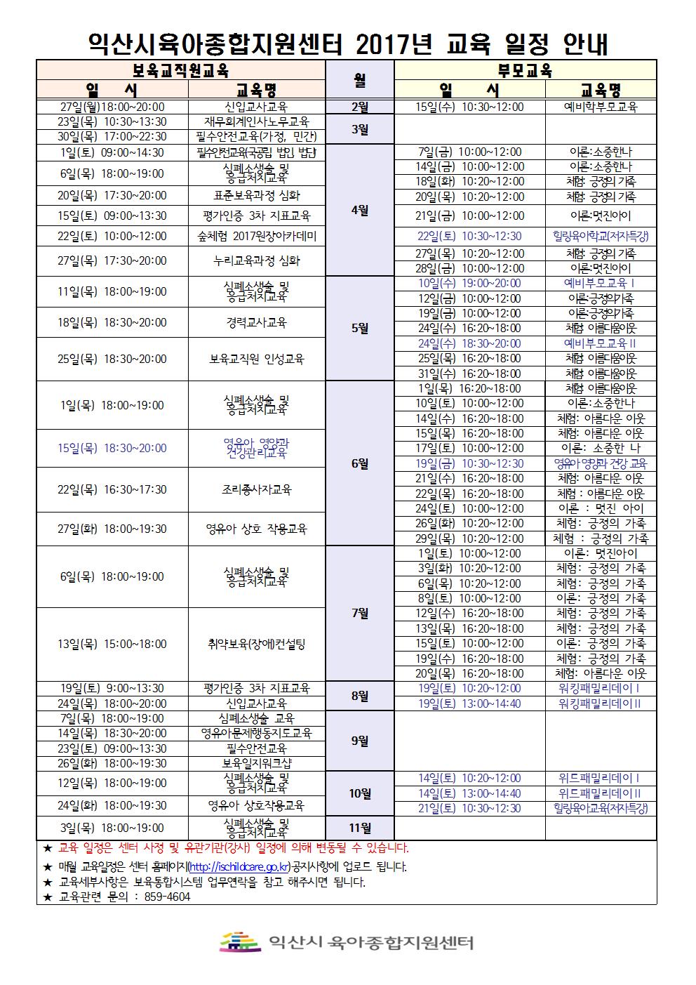 익산시육아종합지원센터 2017년 교육 일정 안내