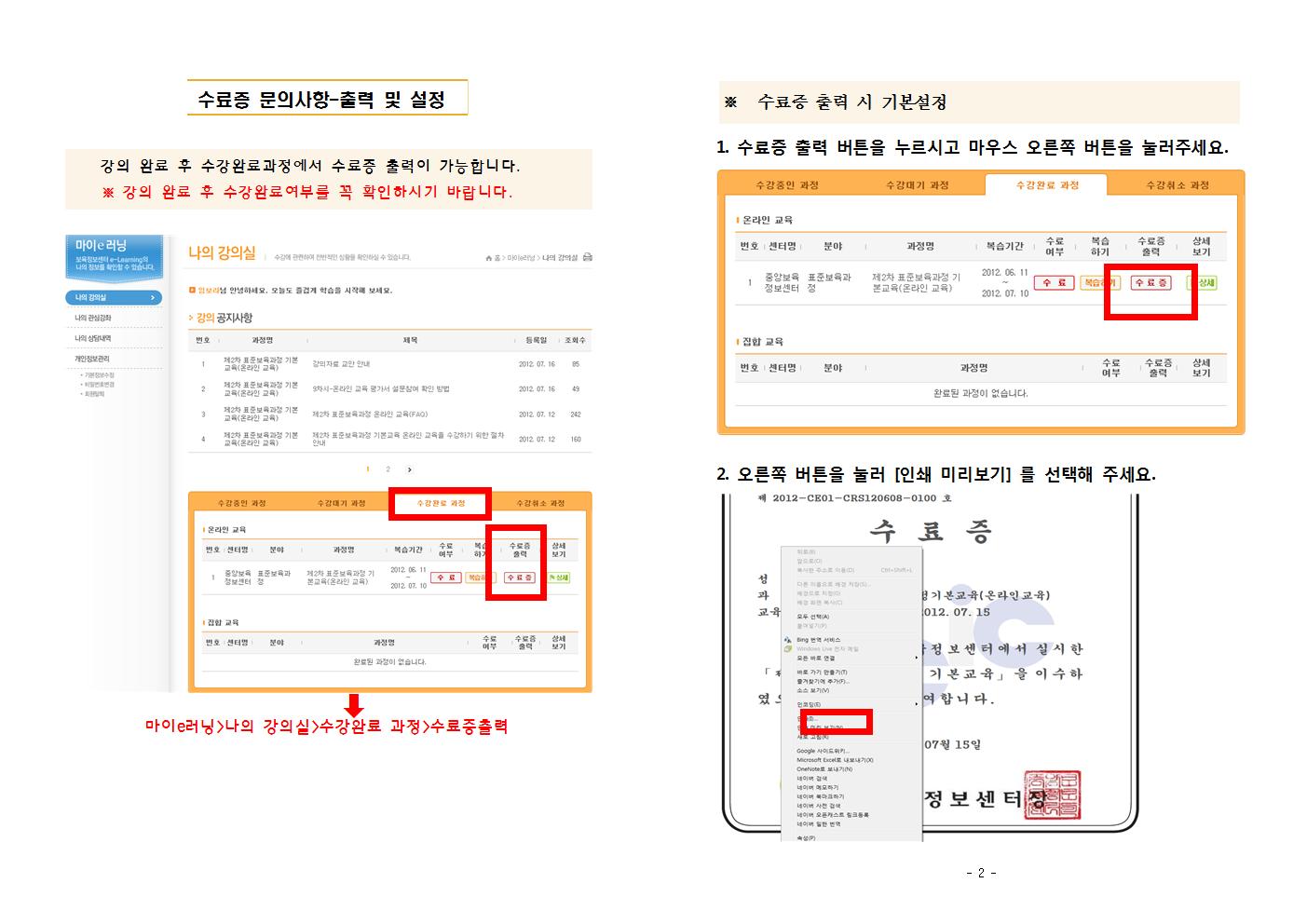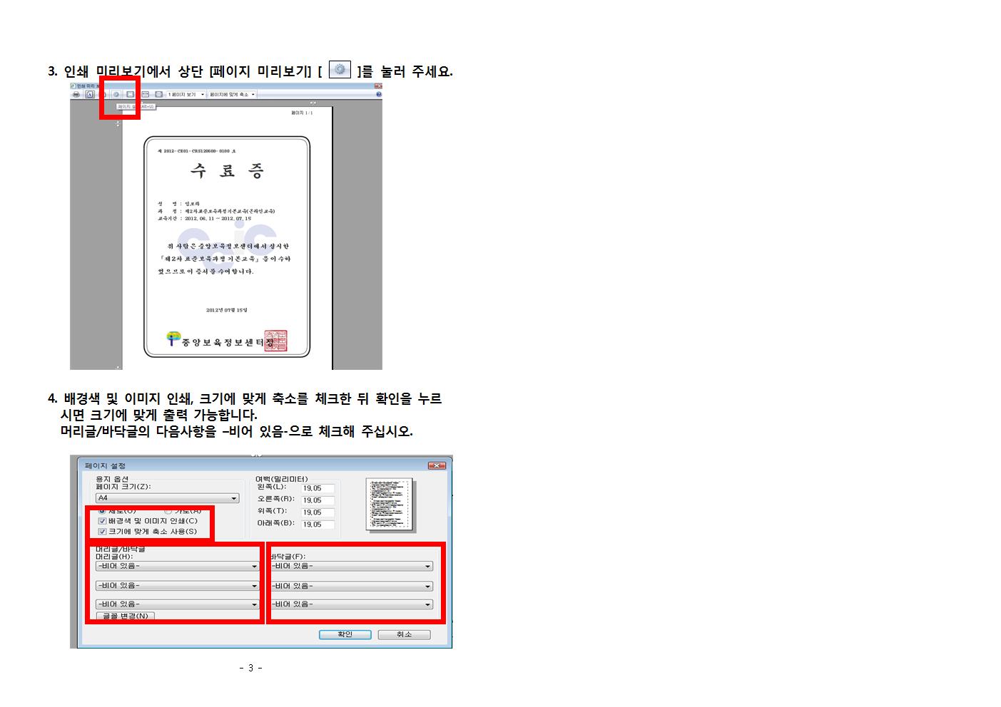 첨부파일 : 수료증+출력+설정001.jpg (127 kb) 수료증+출력+설정002.jpg (91 kb)