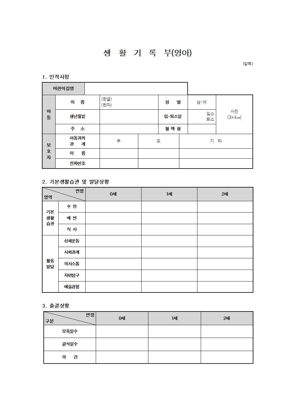 첨부파일 : 영아생활기록부.hwp (20 kb) 영아생활기록부001.jpg (92 kb) 영아생활기록부002.jpg (115 kb) 영아생활기록부003.jpg (97 kb)