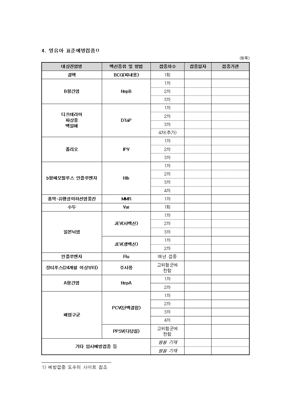 영아 생활기록부