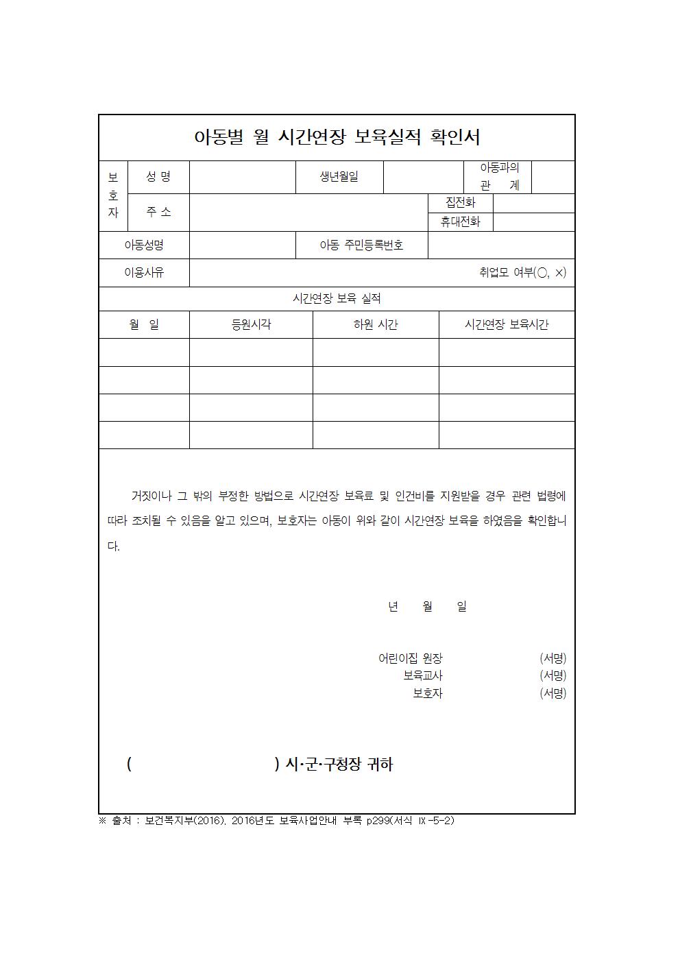 첨부파일 : 아동별월시간연장보육실적확인서001.jpg (89 kb) 아동별월시간연장보육실적확인서.hwp (12 kb)