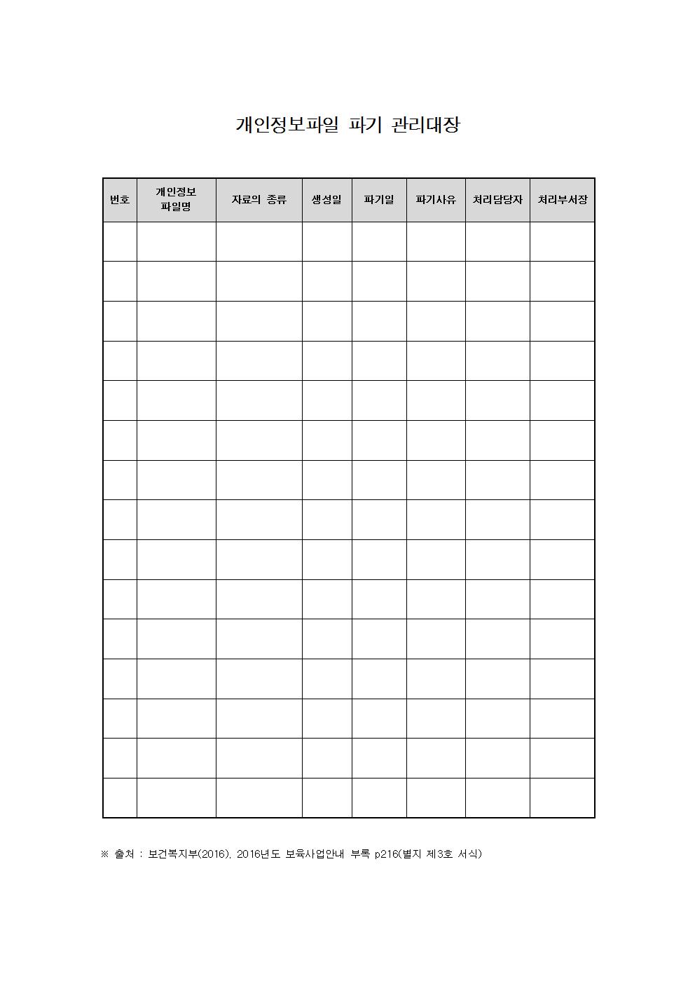 첨부파일 : 개인정보파일파기관리대장.hwp (13 kb) 개인정보파일파기관리대장001.jpg (75 kb)