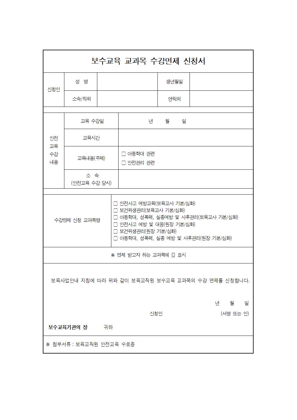보수교육교과목 수강면제 신청서
