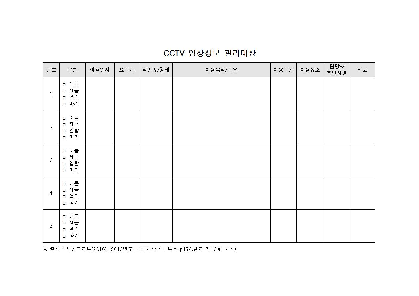 첨부파일 : CCTV영상정보관리대장001.jpg (78 kb) CCTV영상정보관리대장.hwp (12 kb)