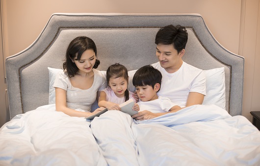 잠들기 전 책을 읽거나 부모와 대화를 하는 것은 아이의 언어 발달, 창의적 사고 및 인지 기능 향상에 도움을 준다. 아이의 연령대에 적합한 이야기를 선택한 후 부모와 함께 창의적이고 긍정적인 대화를 한다면 아이의 상상력에 날개를 달아줄 수 있을 것이다. 또한 차분하게 대화를 나누면 아이를 진정, 이완시켜 질 높은 수면을 유도할 수 있다.