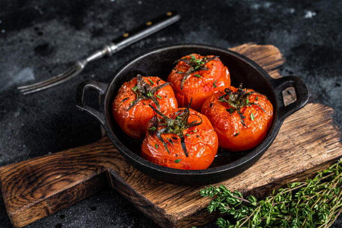 알루미늄 호일 위에 토마토 두 조각을 놓고, 파마산 치즈를 한 스푼씩 뿌린 뒤 구워 먹으면 맛이 좋다.