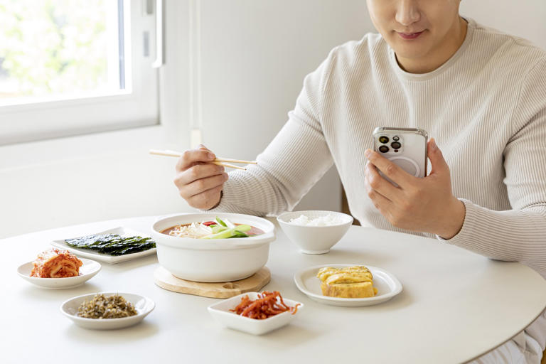 ◇밥 친구로 스마트폰 사용하면 안 좋아과식을 막으려면 식사에 집중하면서 천천히 먹어야 한다. 체내로 충분한 양의 음식이 들어오면 뇌에서는 그만 먹으라는 신호를 보내 섭취를 멈추게 한다. 하지만 음식을 너무 빨리 먹으면 뇌의 신호가 전달되기도 전에 음식물이 계속해서 들어와 배부름을 느끼지 못한다. 그러다 보니 쉽게 과식으로 이어지는 것이다. 특히 혼자 밥을 먹을 때 식사에 집중하기보다 TV나 스마트폰 영상을 보는 경우가 많다. 이는 자신도 모르게 밥을 빨리 먹고 과식하게 만들어 좋지 않은 습관이다.