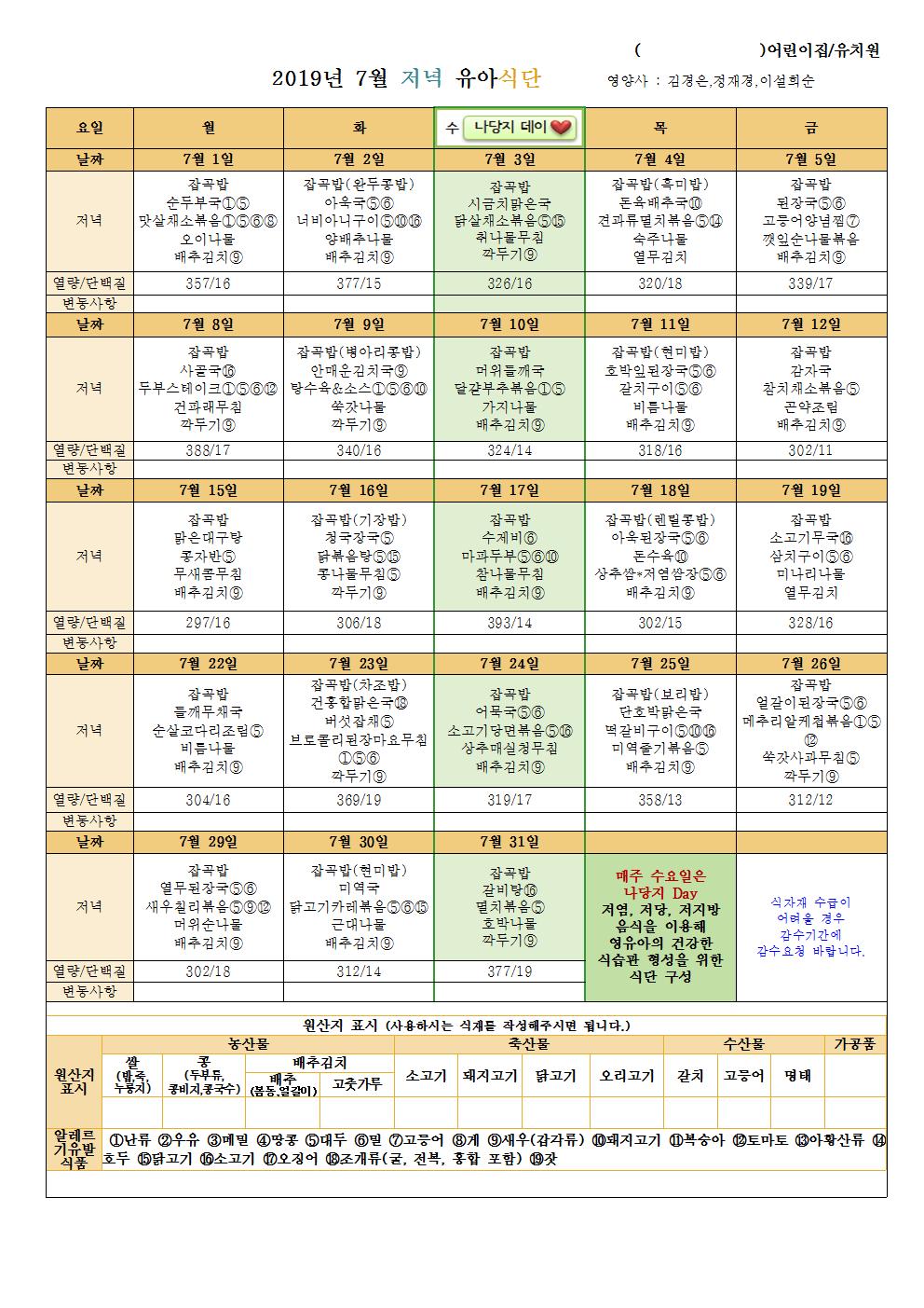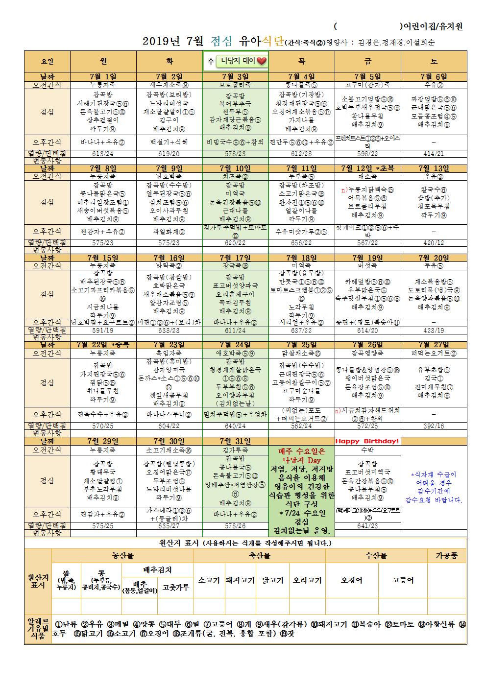 첨부파일 : 7월유아식단.hwp (75 kb) 7월유아식단001.jpg (329 kb) 7월유아식단002.jpg (319 kb) 7월유아식단003.jpg (262 kb)