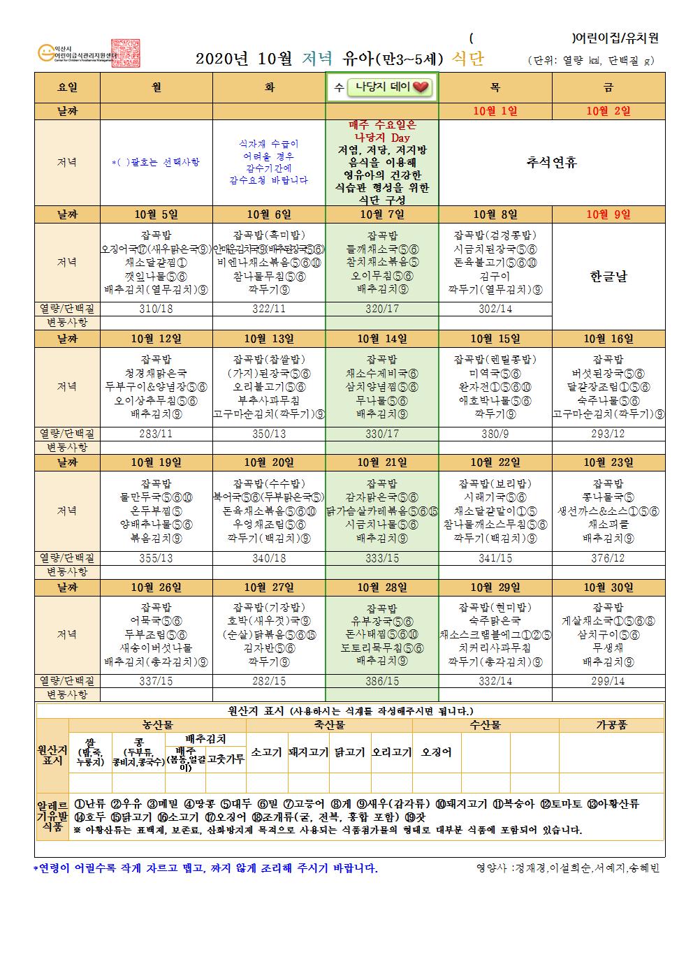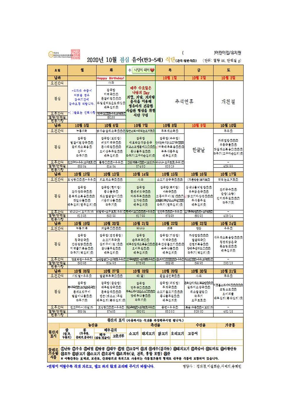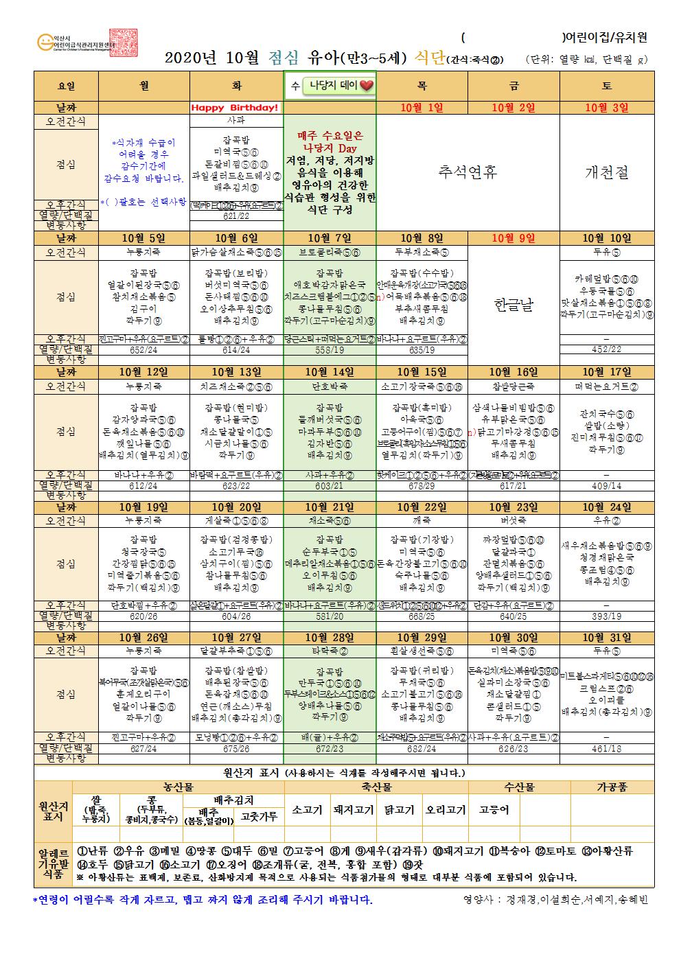 홈 > 어린이집지원 > 월별식단 > 유아식단