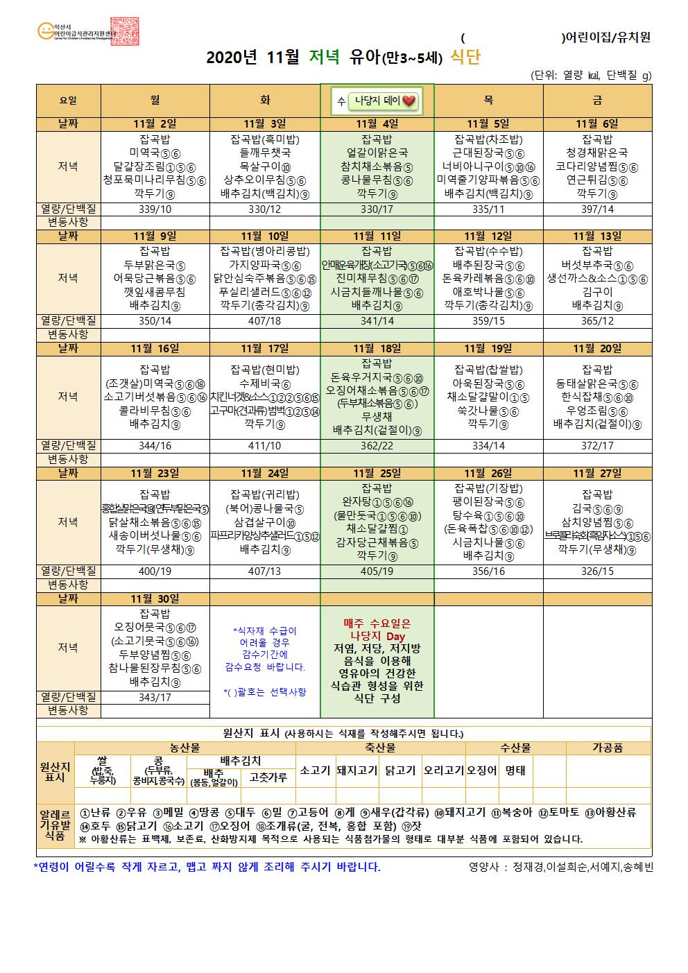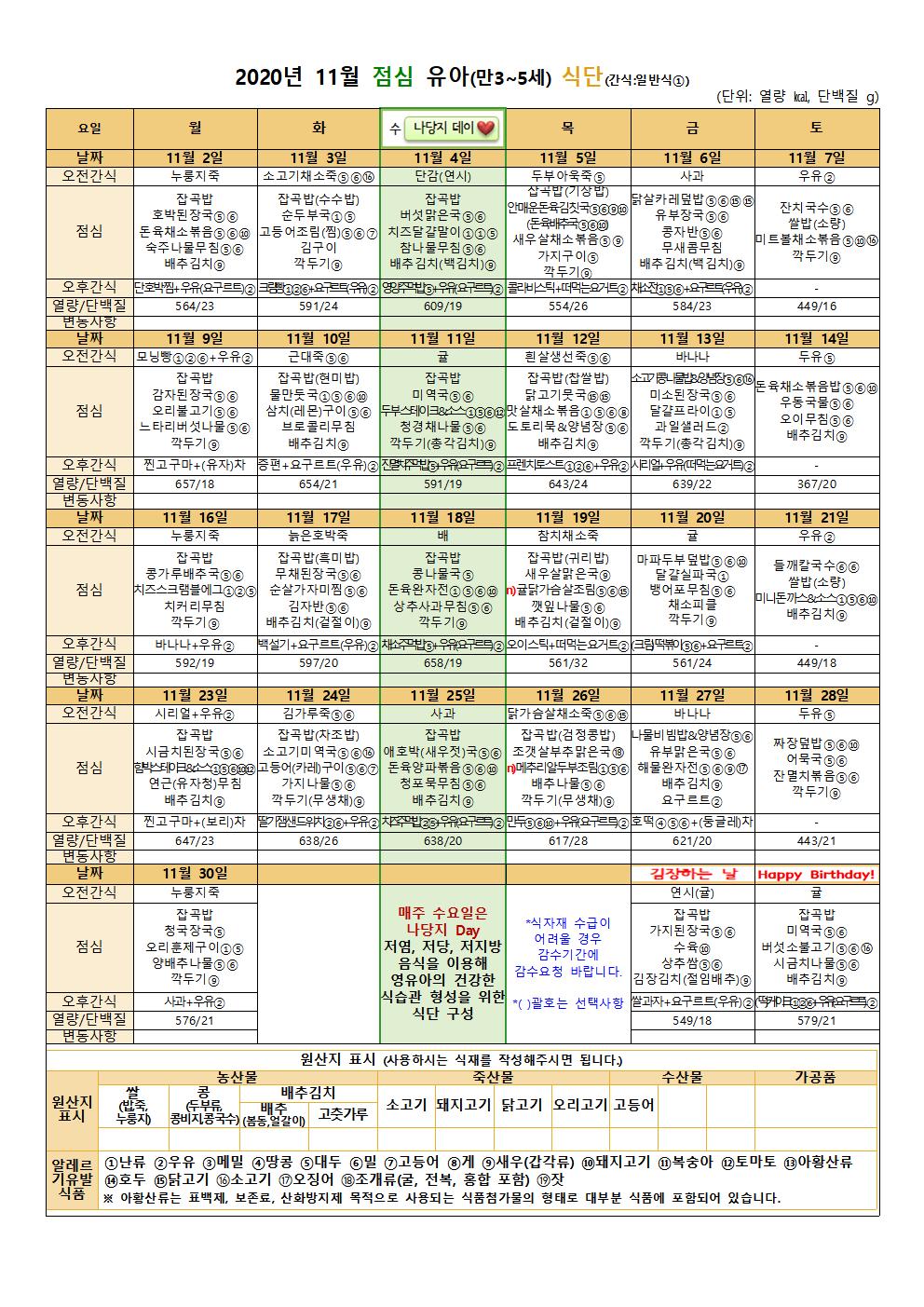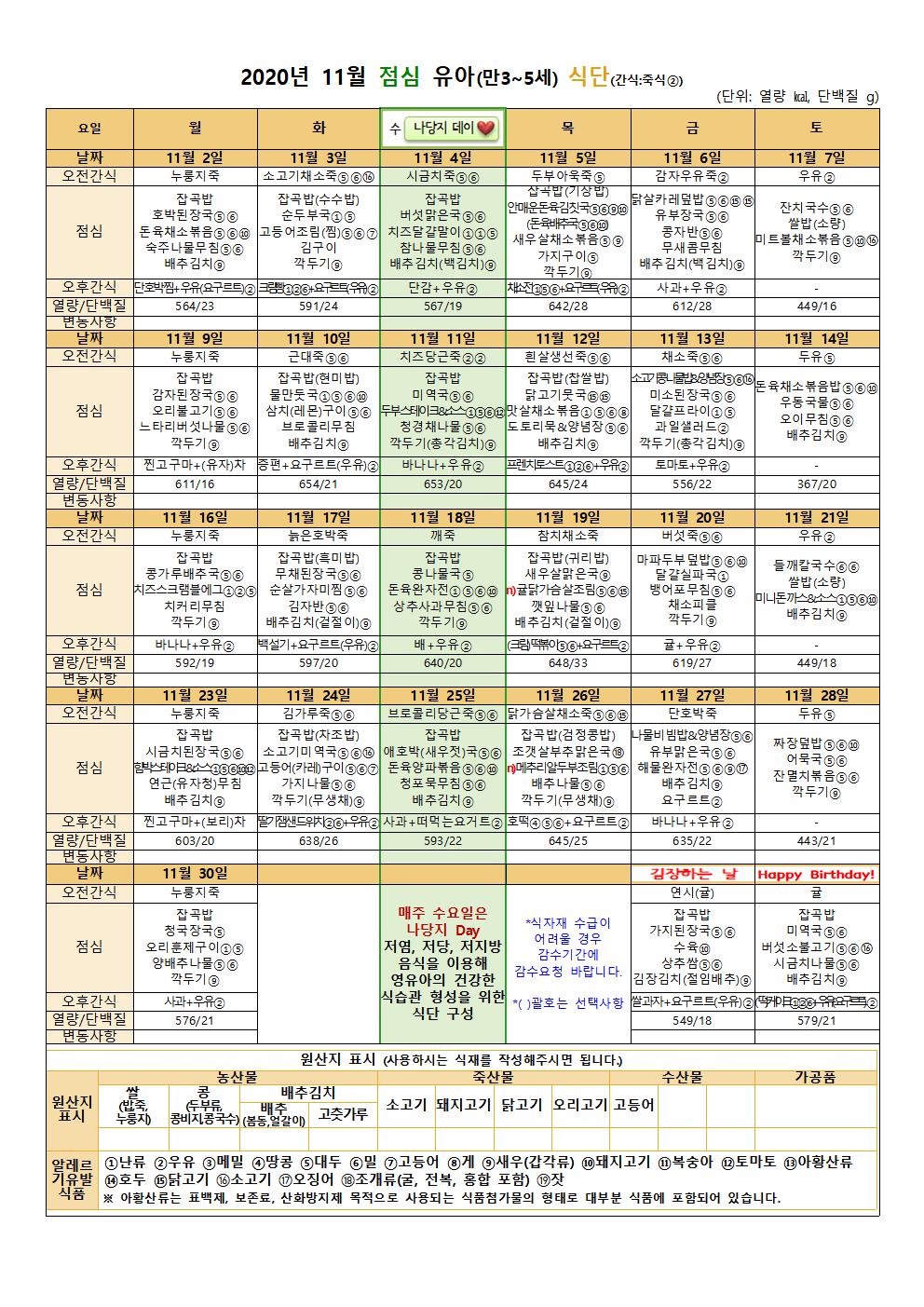 홈 > 어린이집지원 > 월별식단 > 유아식단