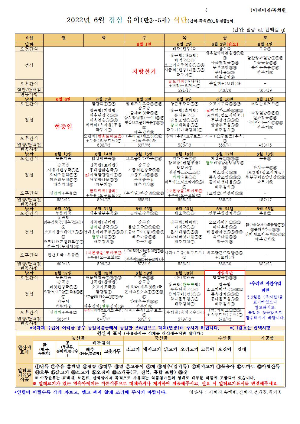 홈 > 어린이집지원 > 월별식단 > 유아식단