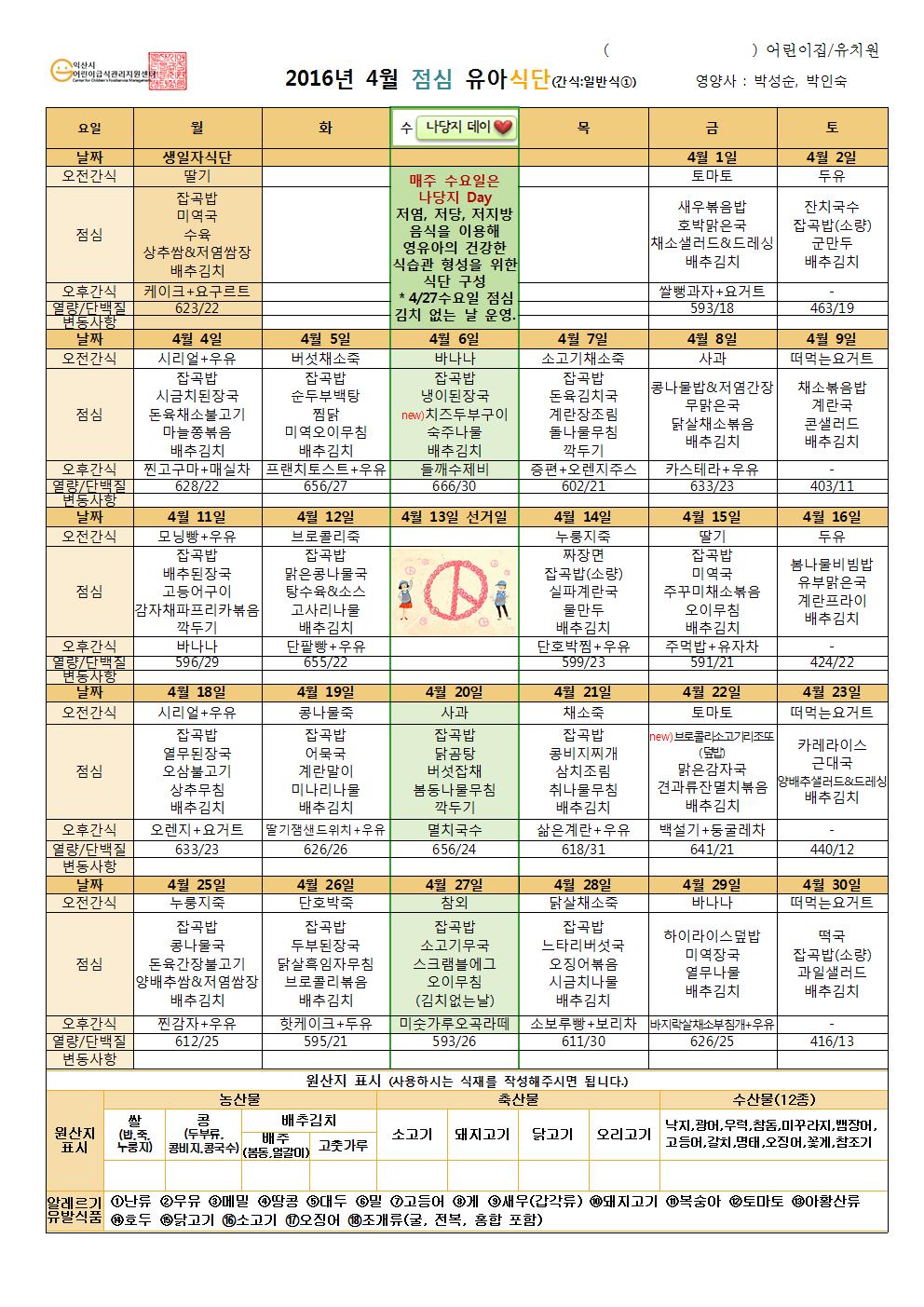 홈 > 어린이집지원 > 월별식단 > 유아식단