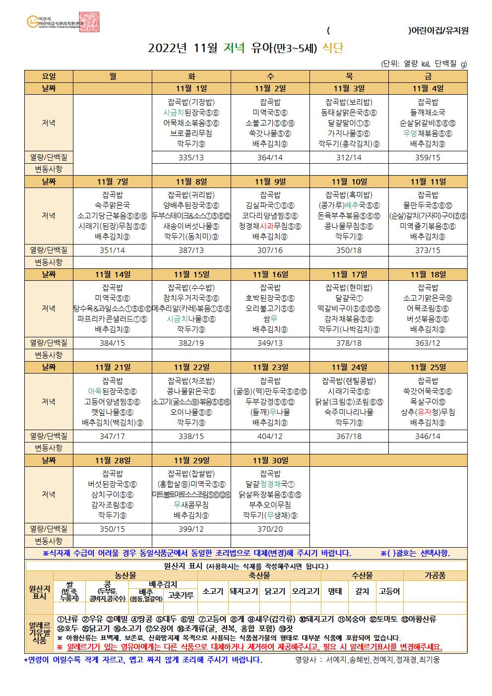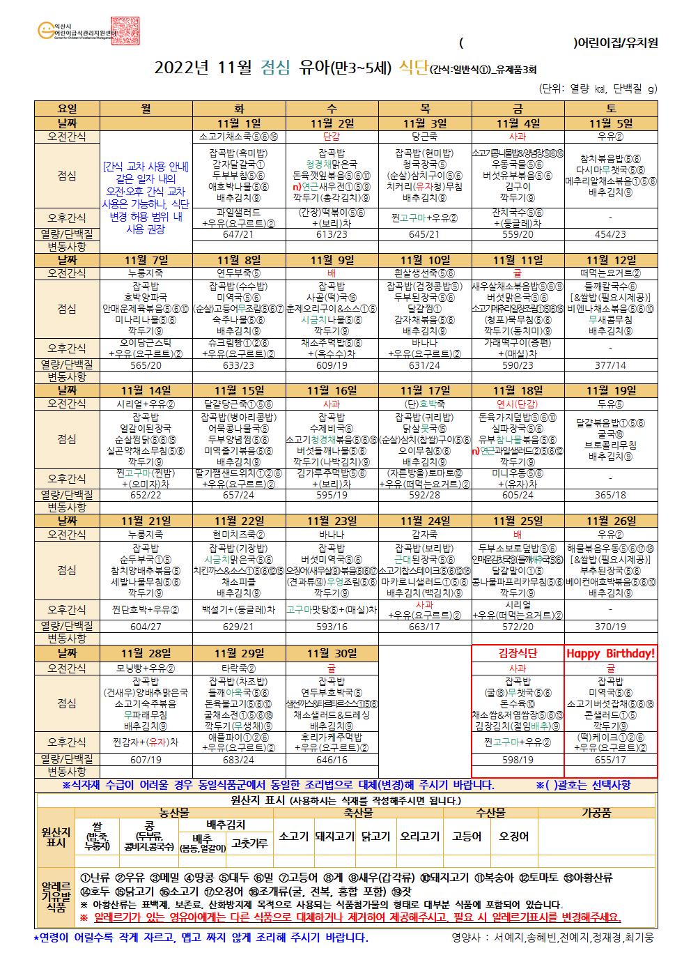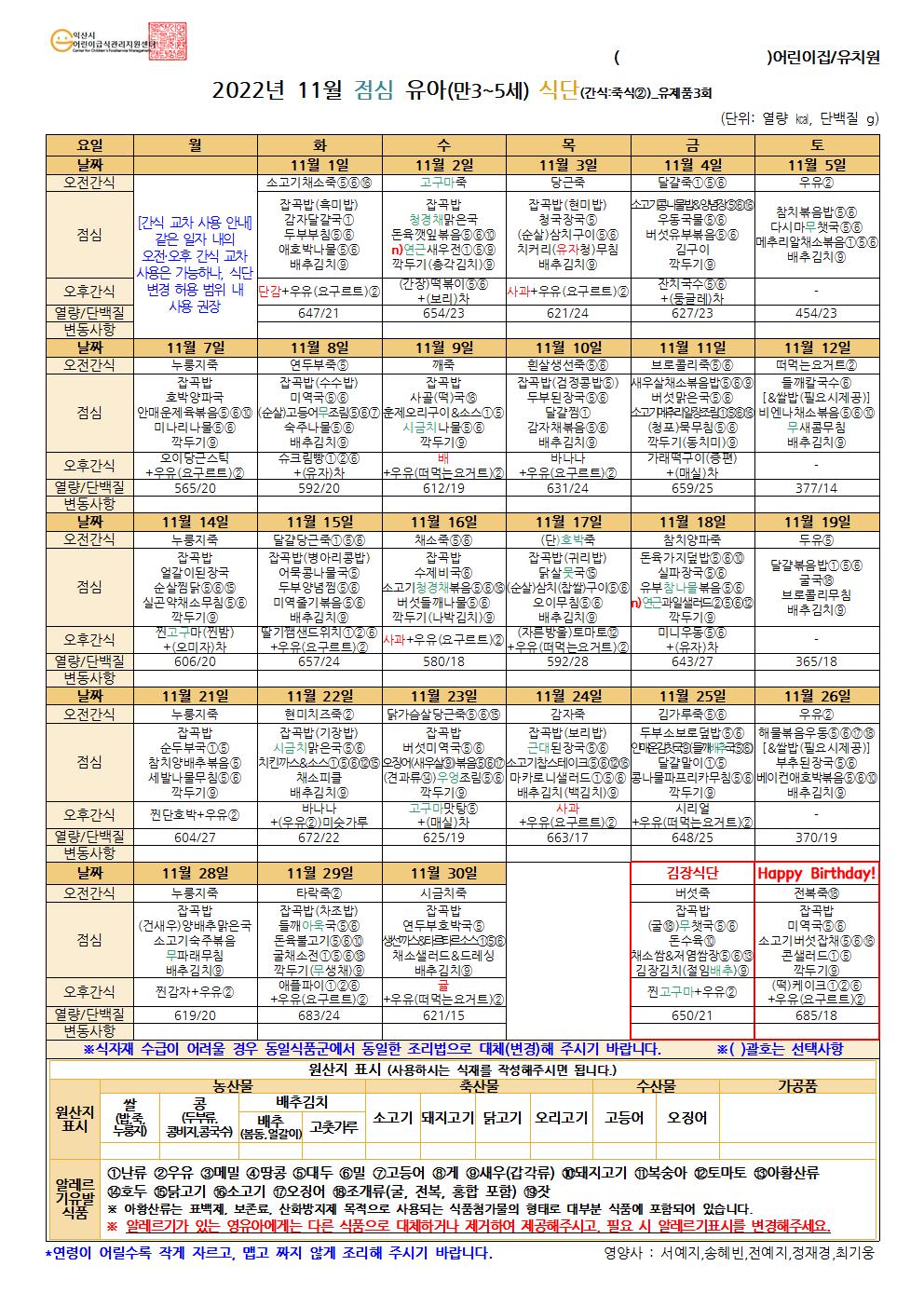 홈 > 어린이집지원 > 월별식단 > 유아식단