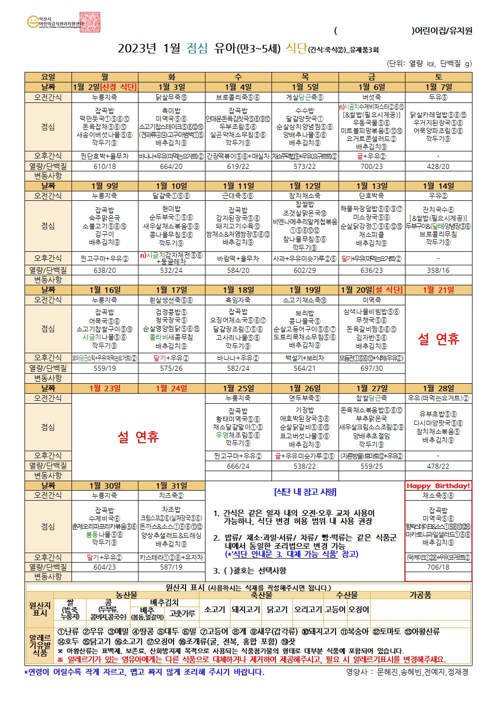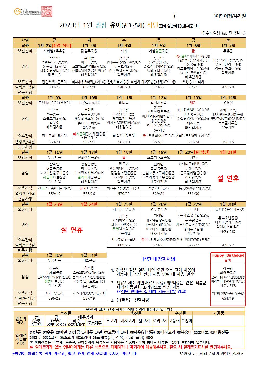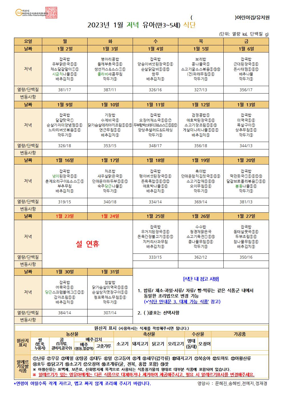 홈 > 어린이집지원 > 월별식단 > 유아식단