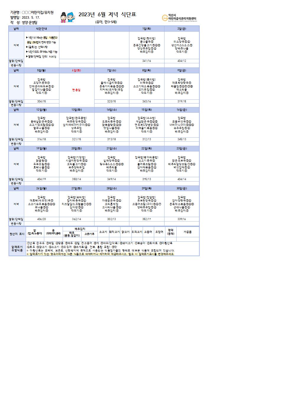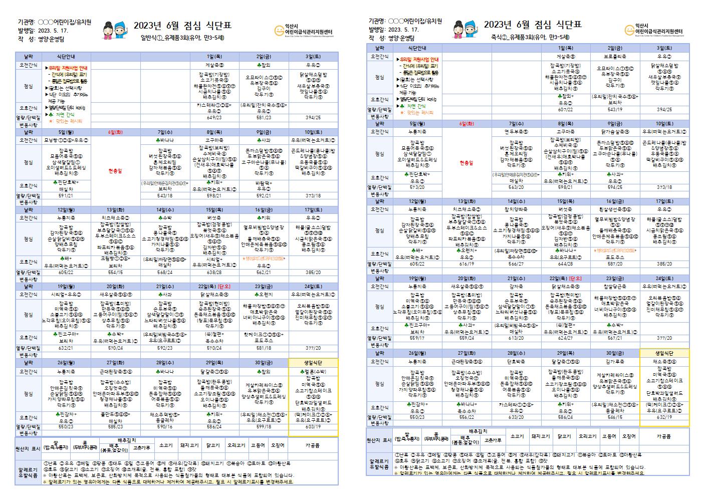 첨부파일 : 2023년6월유아식단.hwp (269 kb) 2023년6월유아식단001.jpg (357 kb) 2023년6월유아식단002.jpg (139 kb)