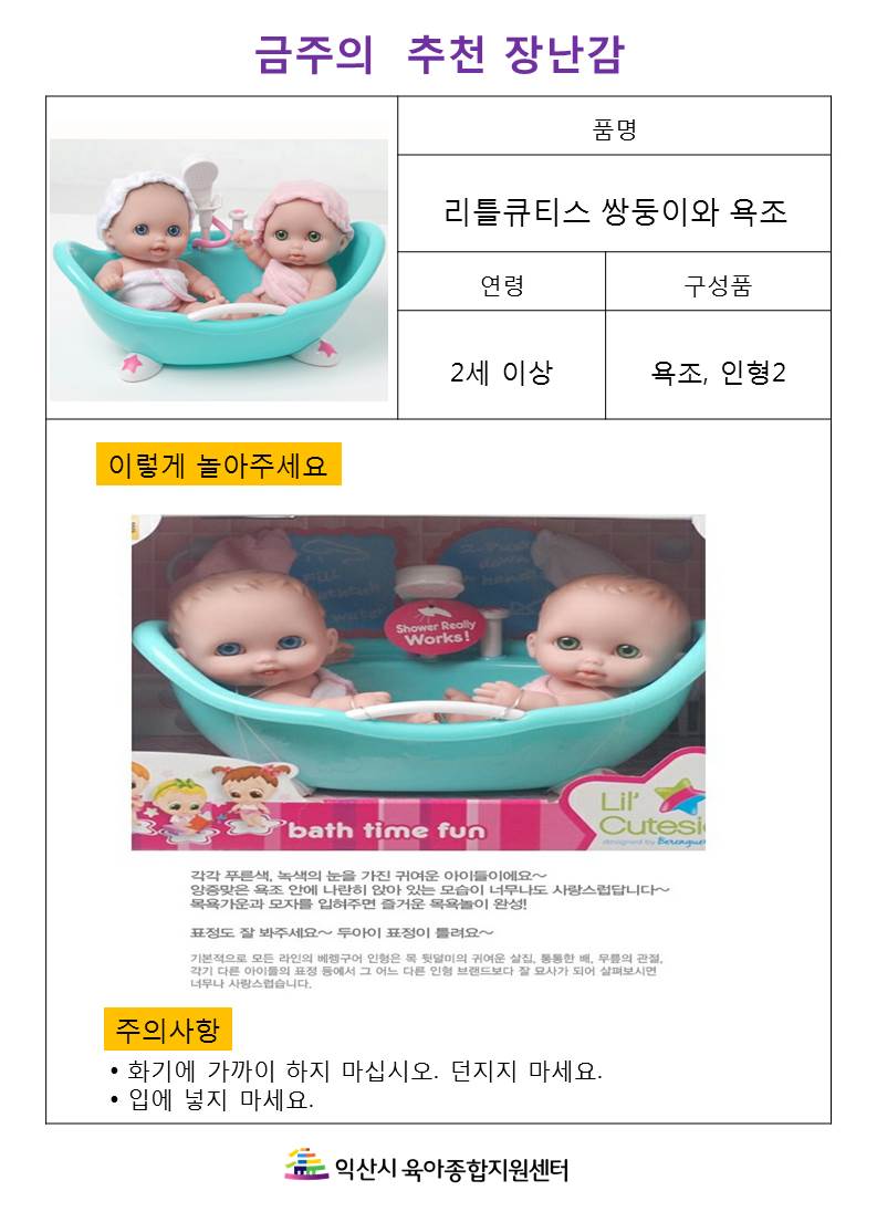 금주의 추천 장난감-리틀큐티스 쌍둥이와 욕조