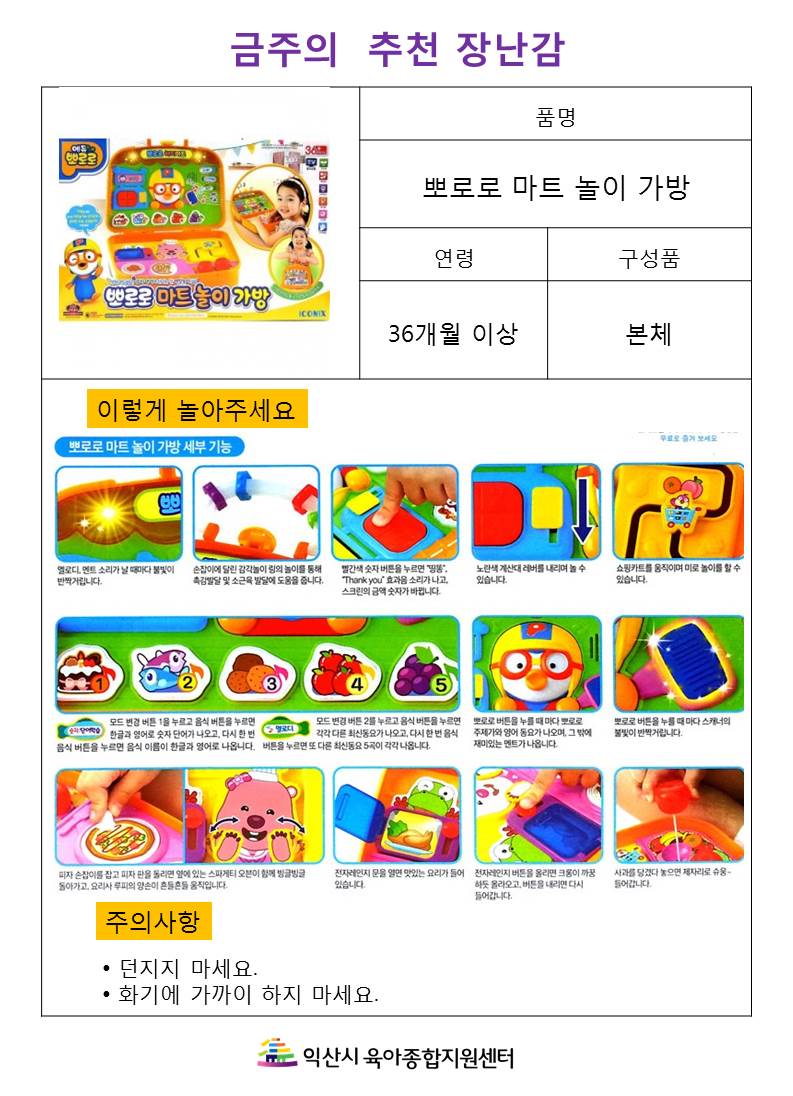 금주의 추천 장난감- 뽀로로 마트 놀이 가방