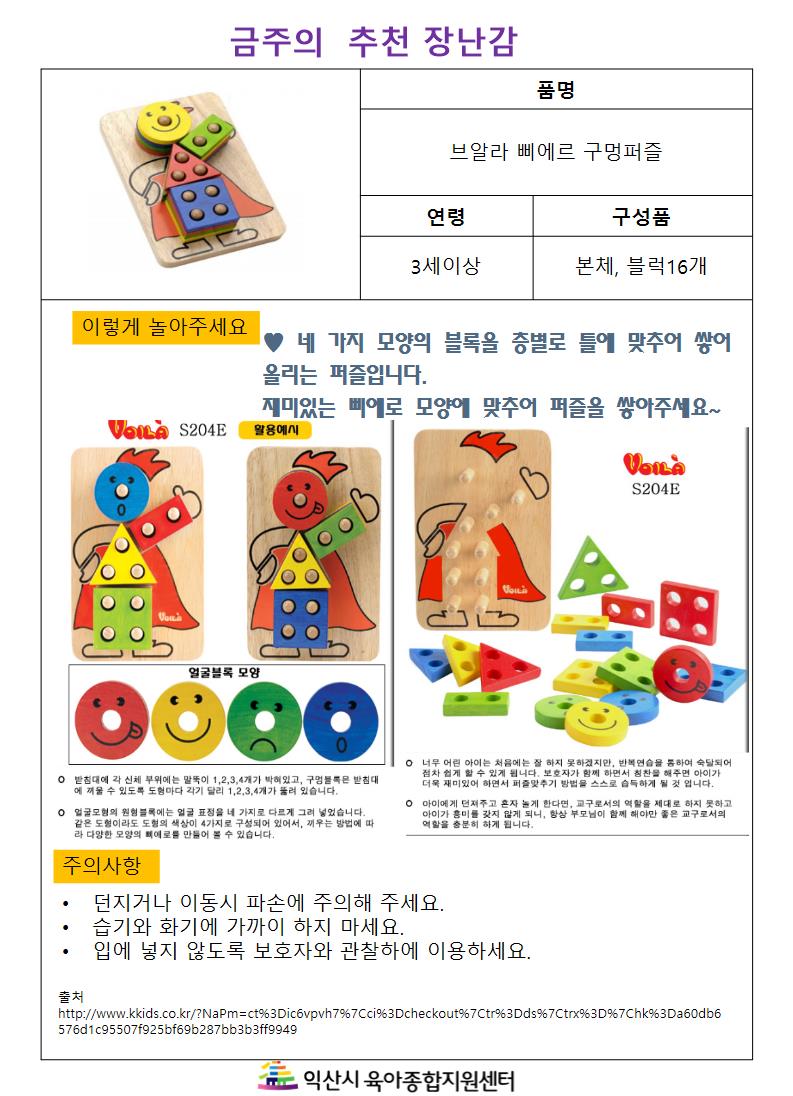 금주의 추천 장난감- 브알라 삐에르 구멍놀이