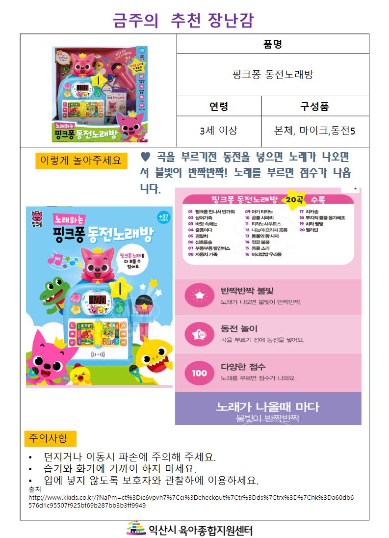 금주의 추천 장난감- 핑크퐁동전노래방