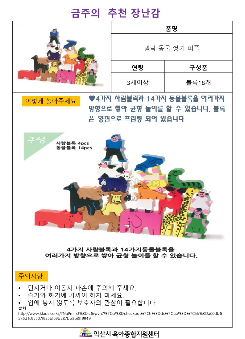 금주의 추천 장난감-빌락 동물 쌓기 퍼즐