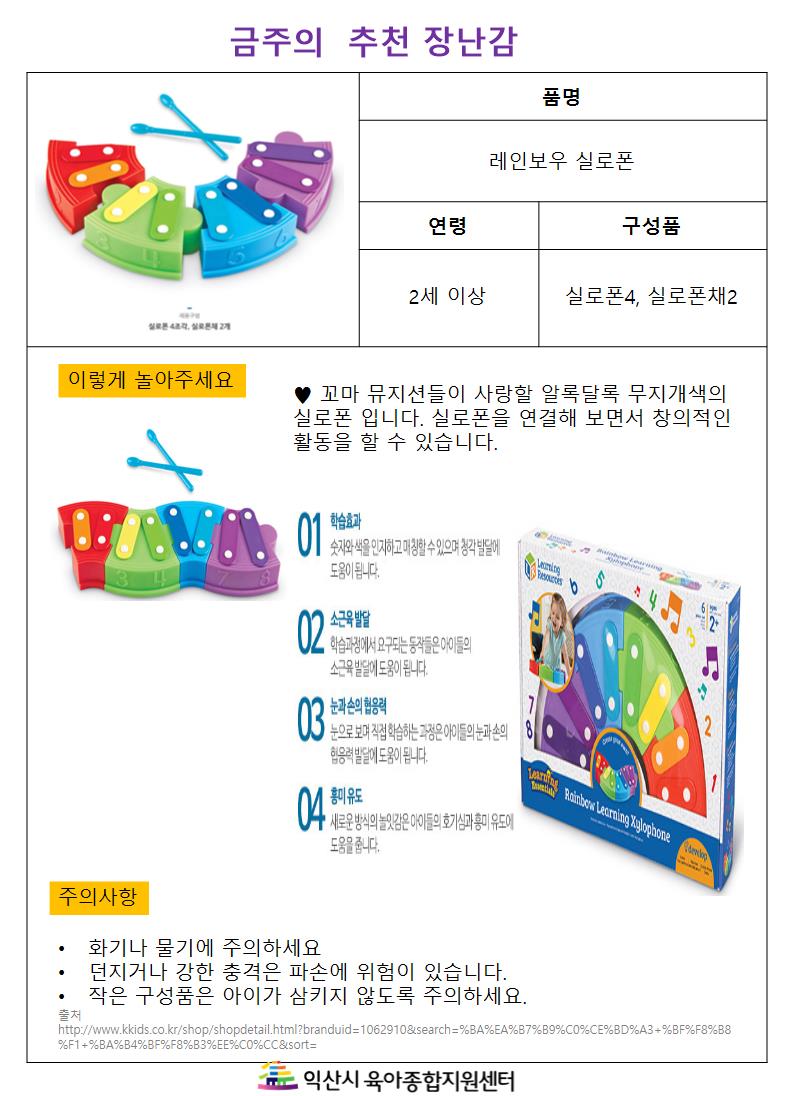 금주의 추천 장난감-레인보우 실로폰