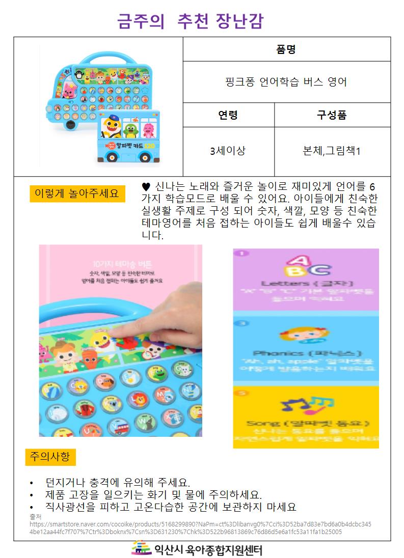 금주의 추천 장난감-핑크퐁 언어학습버스 영어