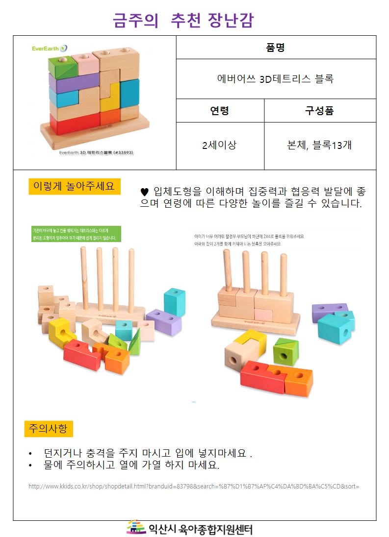 금주의 추천 장난감-에버어쓰 3D테트리스 블럭