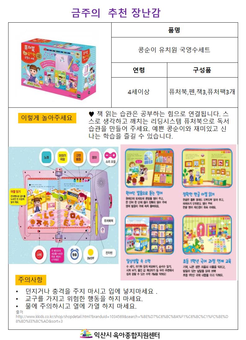 금주의 추천 장난감-콩순이유치원 국영수세트