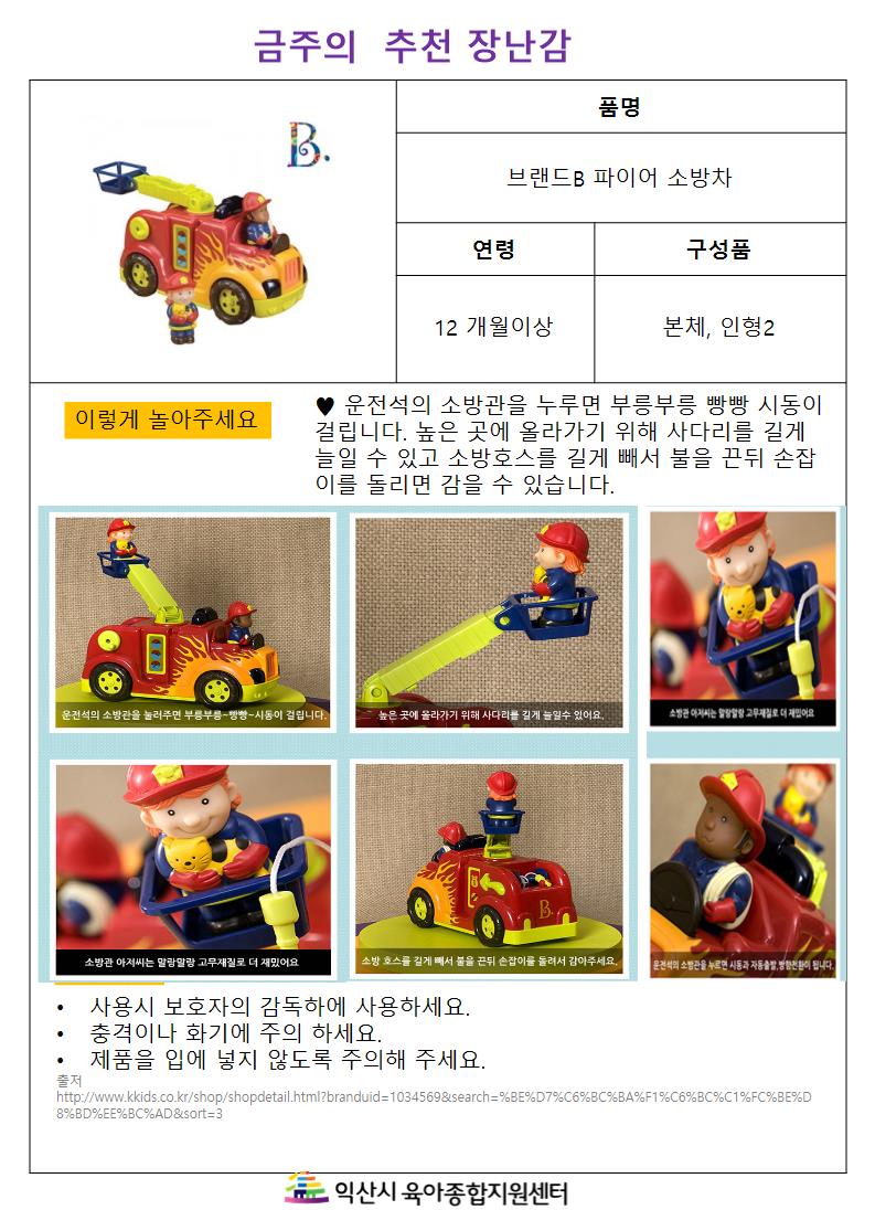 금주의 추천 장난감-브랜드B 파이어 소방차