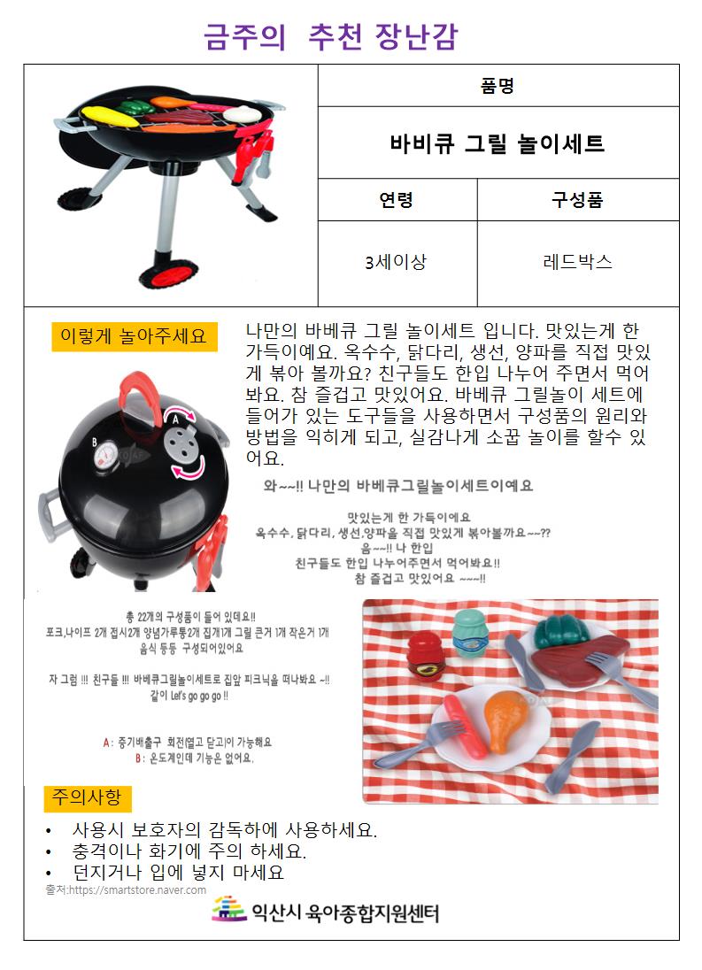 금주의 추천 장난감- 바베큐 그릴 놀이세트