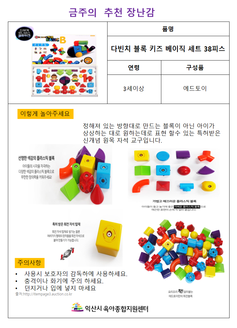 금주의 추천 장난감-다빈치 블록 키즈 베이직 세트 38피스