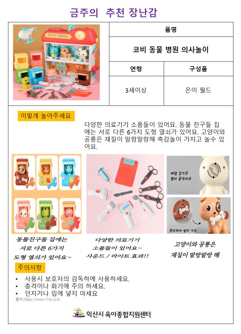 금주의 추천 장난감-코비동물병원 의사놀이