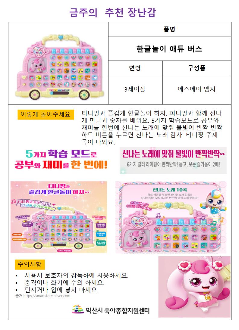 금주의 추천 장난감-한글이 에듀 버스