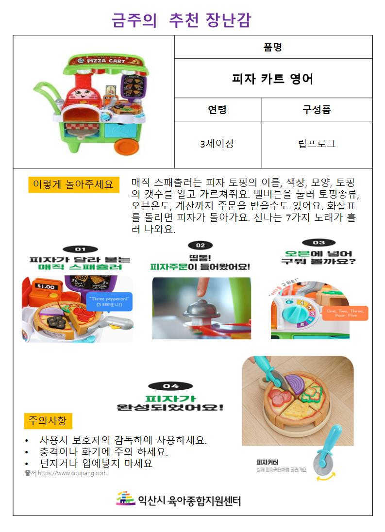 매직 스패출러는 피자 토핑의 이름, 색상, 모양, 토핑의 갯수를 알고 가르쳐줘요. 벨버튼을 눌러 토핑종류, 오븐온도, 계산까지 주문을 받을수도 있어요. 화살표를 돌리면 피자가 돌아가요. 신나는 7가지 노래가 흘러 나와요.