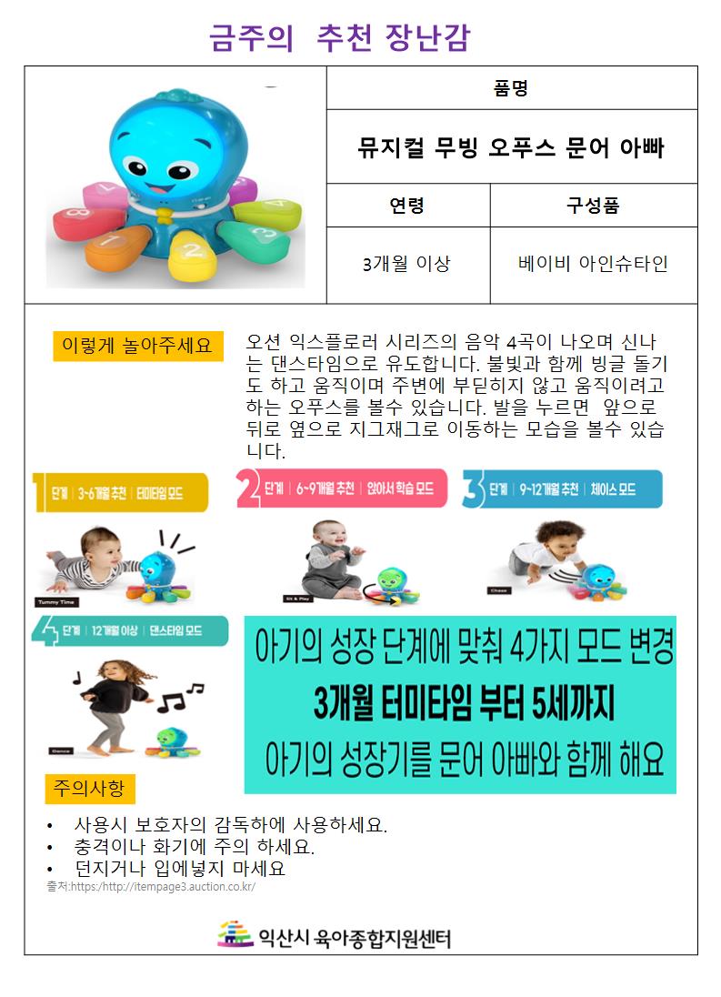 금주의 추천 장난감- 큐지컬 무빙 오푸스 문어 아빠