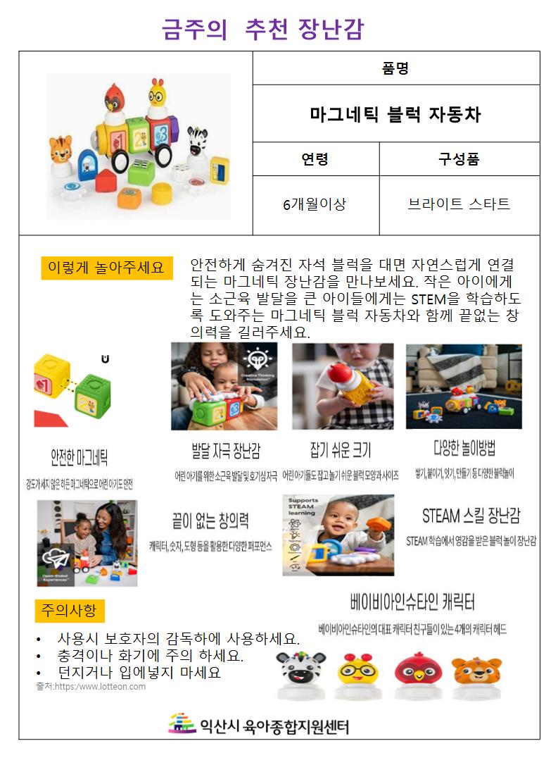 금주의 추천 장난감- 마그네틱 블록 자동차 (영등점)