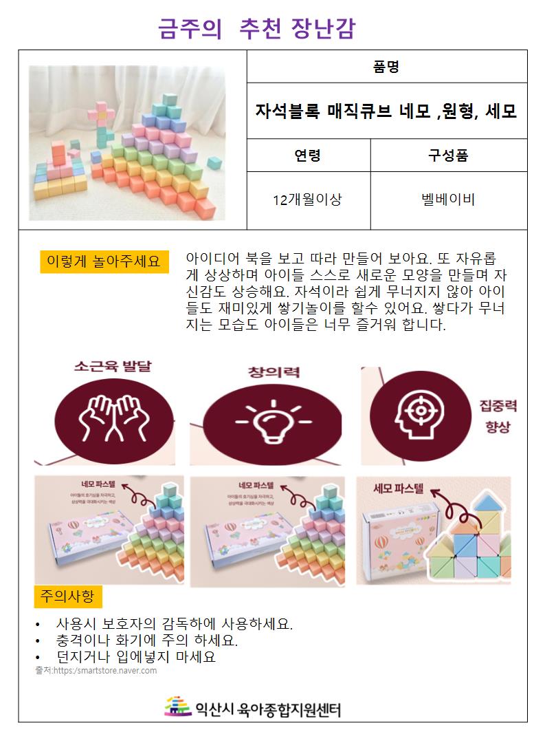 금주의 추천 장난감-자석블럭 매직 큐브, 네모, 세모, 동그라미(영등점)